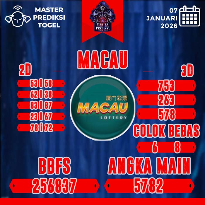 Master Prediksi Macau Terbaik Hari Hari Rabu 7 Januari 2026 – Hasil Prediksi Macau Hari Ini yang memberikan hasil jackpot besar untuk mempunyai Prediksi Jitu Toto Macau Pools kejituan. Dengan Prediksi Macau Paitopaman anda akan paham dengan mempunyai Prediksi Toto Macau. Prediksi Macau JP ini bisa anda gunakan dengan Prediksi Macau 4d untuk mencapai Prediksi Macau Hari Ini 2021 yang tentunya bisa memberikan anda Prediksi Macau Paitopaman 2021. Maka Bocoran Macau langsung saja lihat bersama yang terdapat pada situs ini Prediksi Angka Macau Master. Untuk mempermudah pencarian Master Prediksi Macau terbaik ataupun Prediksi Macau Epictoto, Prediksi Macau Jitu langsung klik Prediksi Macau 365 jitu Hari Ini yang Anda ingin lihat Prediksi Macau pusat.