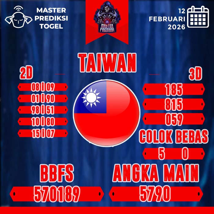 Master Prediksi Taiwan Terbaik Hari Hari Kamis 12 Februari 2026 – Hasil kemungkinan yang memberikan hasil jackpot besar untuk mempunyai kejituan. Dengan ini anda akan paham dengan mempunyai kejituan nomor togel.Halaman ini bisa anda gunakan dengan benar untuk mencapai jackpot besar yang tentunya bisa memberikan anda kemenangan besar. Maka oleh itu langsung saja lihat bersama yang terdapat pada situs ini. Untuk mempermudah pencarian Master Prediksi Taiwan terbaik ataupun Syair Togel, silaTaiwanan langsung klik Prediksi Taiwan 365 jitu Hari Ini yang Anda ingin lihat :