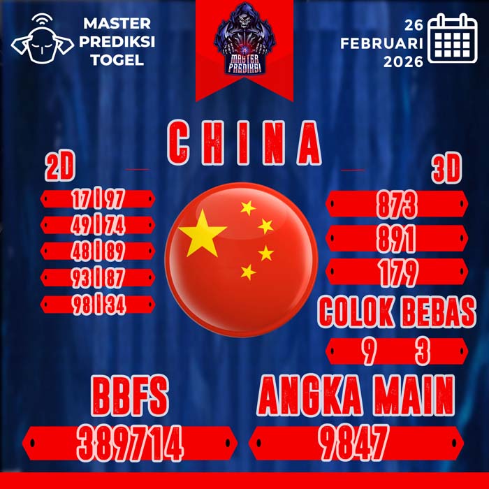 Master Prediksi China Terbaik Hari Hari Kamis 26 Februari 2026 – Hasil kemungkinan yang memberikan hasil jackpot besar untuk mempunyai kejituan. Dengan ini anda akan paham dengan mempunyai kejituan nomor togel.Halaman ini bisa anda gunakan dengan benar untuk mencapai jackpot besar yang tentunya bisa memberikan anda kemenangan besar. Maka oleh itu langsung saja lihat bersama yang terdapat pada situs ini. Untuk mempermudah pencarian Master Prediksi China terbaik ataupun Syair Togel, silaChinaan langsung klik Prediksi China 365 jitu Hari Ini yang Anda ingin lihat :