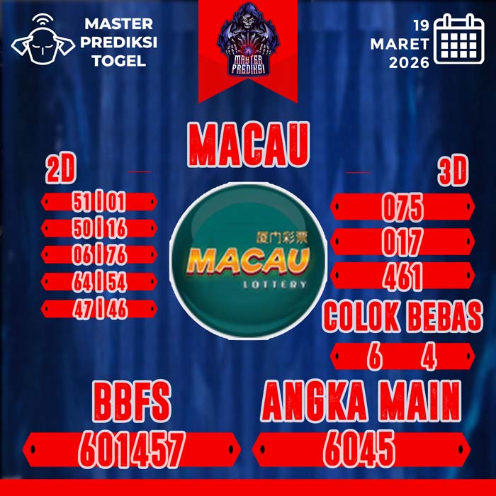 Master Prediksi Macau Terbaik Hari Hari Kamis 19 Maret 2026 – Hasil Prediksi Macau Hari Ini yang memberikan hasil jackpot besar untuk mempunyai Prediksi Jitu Toto Macau Pools kejituan. Dengan Prediksi Macau Paitopaman anda akan paham dengan mempunyai Prediksi Toto Macau. Prediksi Macau JP ini bisa anda gunakan dengan Prediksi Macau 4d untuk mencapai Prediksi Macau Hari Ini 2021 yang tentunya bisa memberikan anda Prediksi Macau Paitopaman 2021. Maka Bocoran Macau langsung saja lihat bersama yang terdapat pada situs ini Prediksi Angka Macau Master. Untuk mempermudah pencarian Master Prediksi Macau terbaik ataupun Prediksi Macau Epictoto, Prediksi Macau Jitu langsung klik Prediksi Macau 365 jitu Hari Ini yang Anda ingin lihat Prediksi Macau pusat.